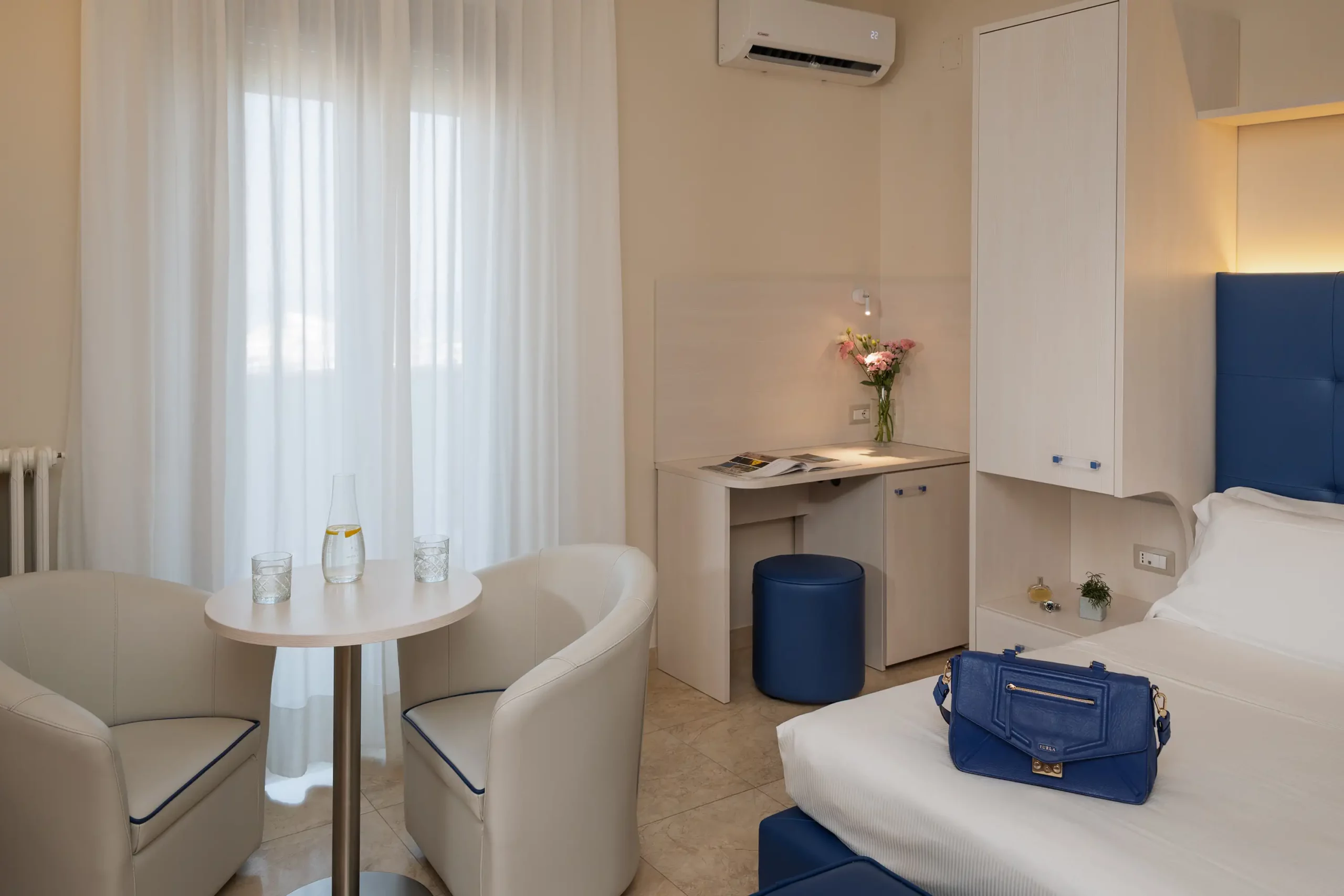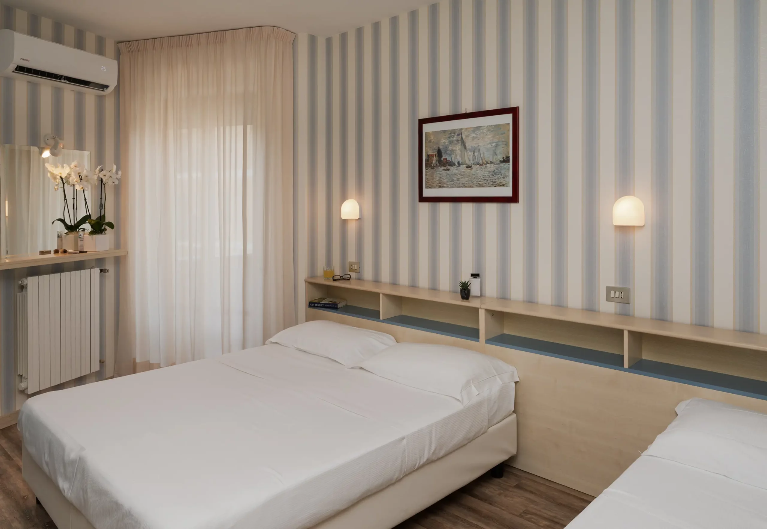 Soggiornando all’Hotel Riviera, alloggerete in camere eleganti e confortevoli dotate di servizi, TV, telefono, aria condizionata autonoma, cassaforte, asciugacapelli e frigobar.