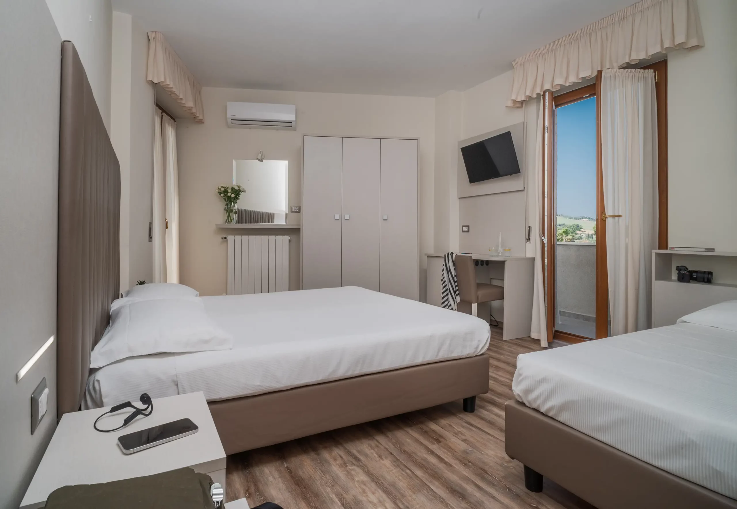 Dai balconi delle nostre stanze il vostro sguardo potrà spaziare verso il mare oppure verso i dolci pendii della collina marchigiana, godendo così di un bellissimo panorama.