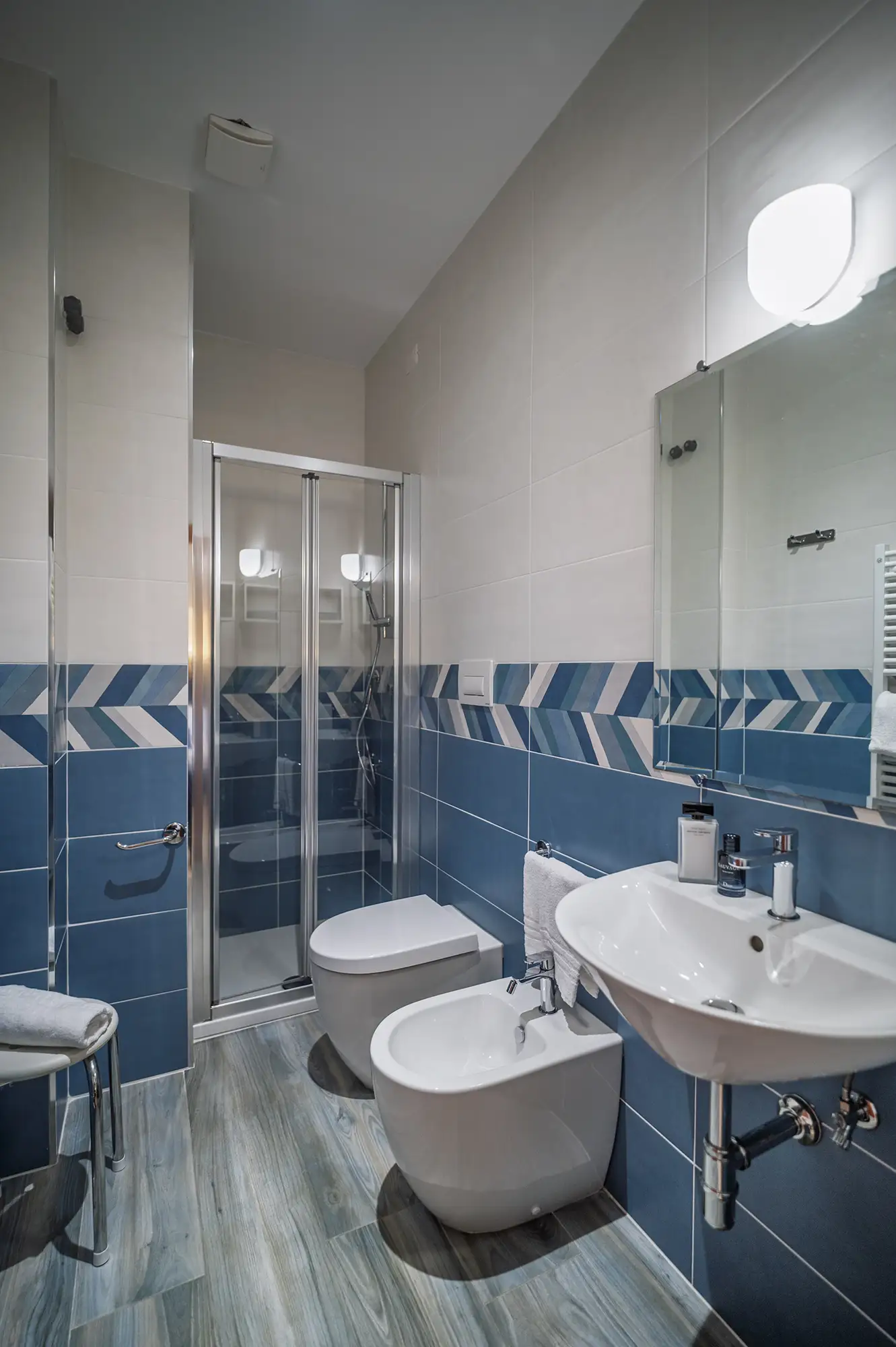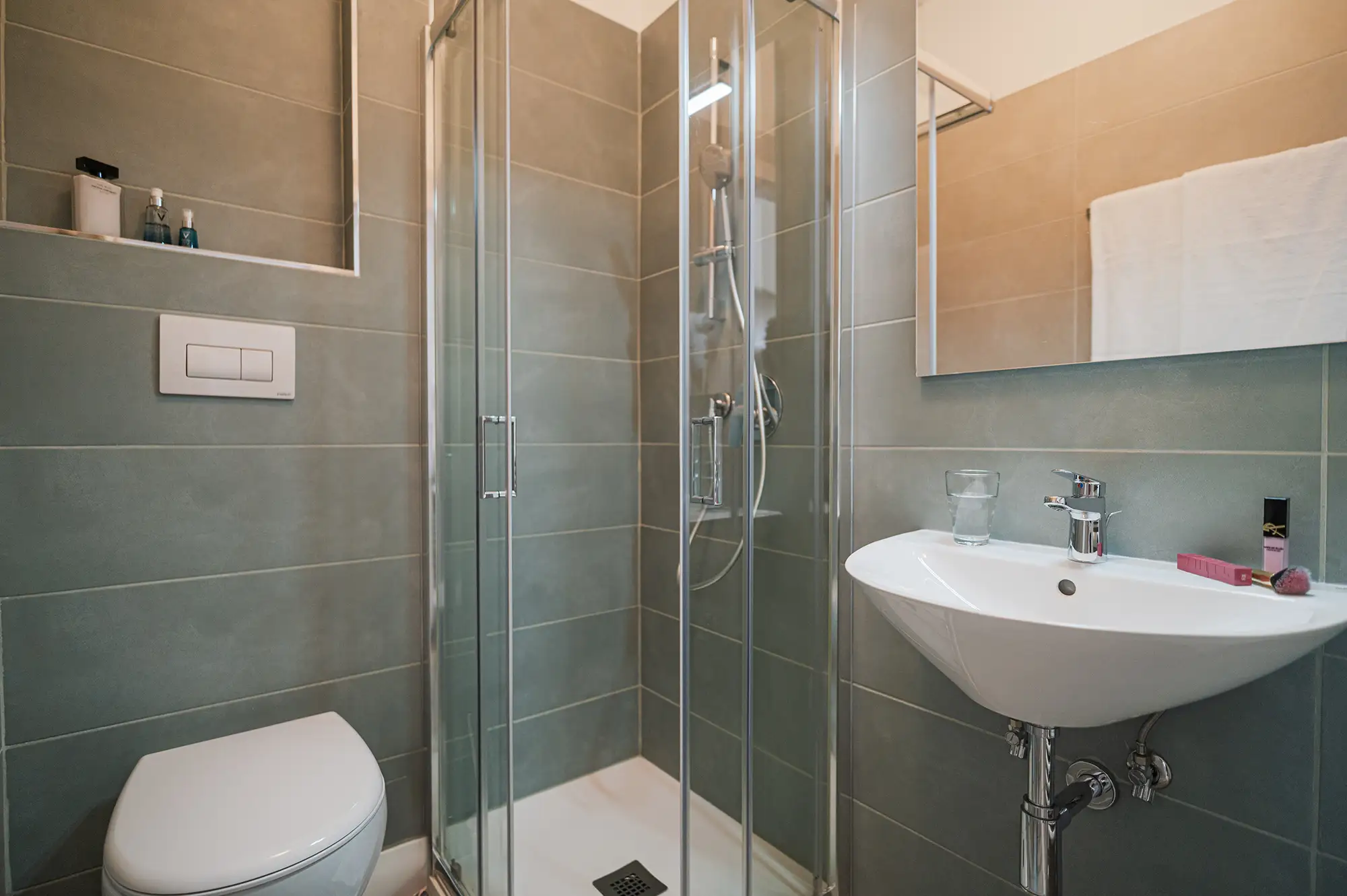 Box doccia, asciugacapelli e pratico set di cortesia.